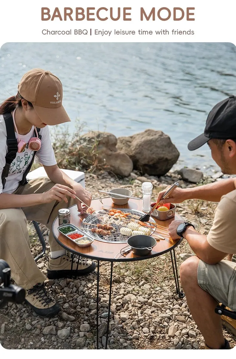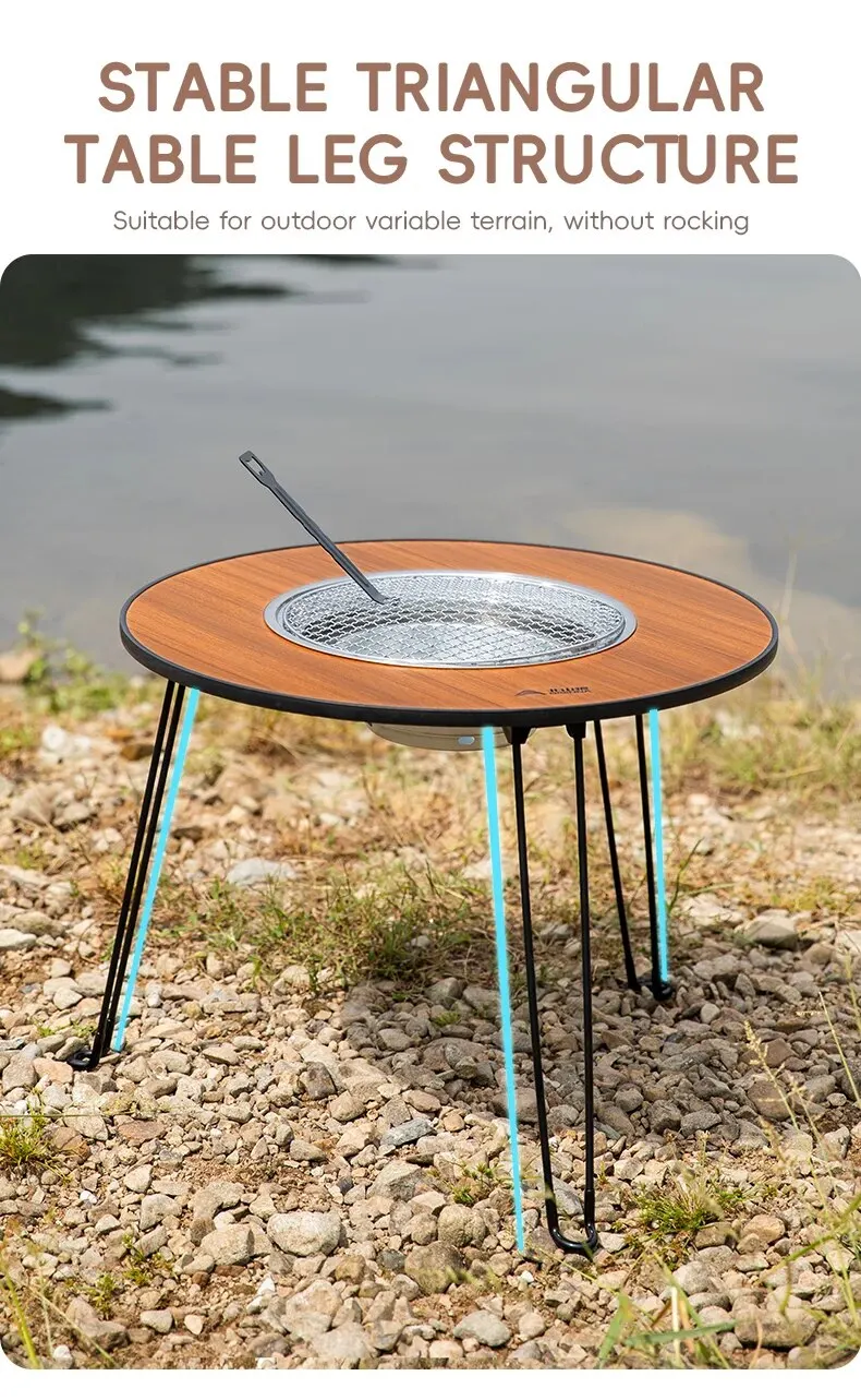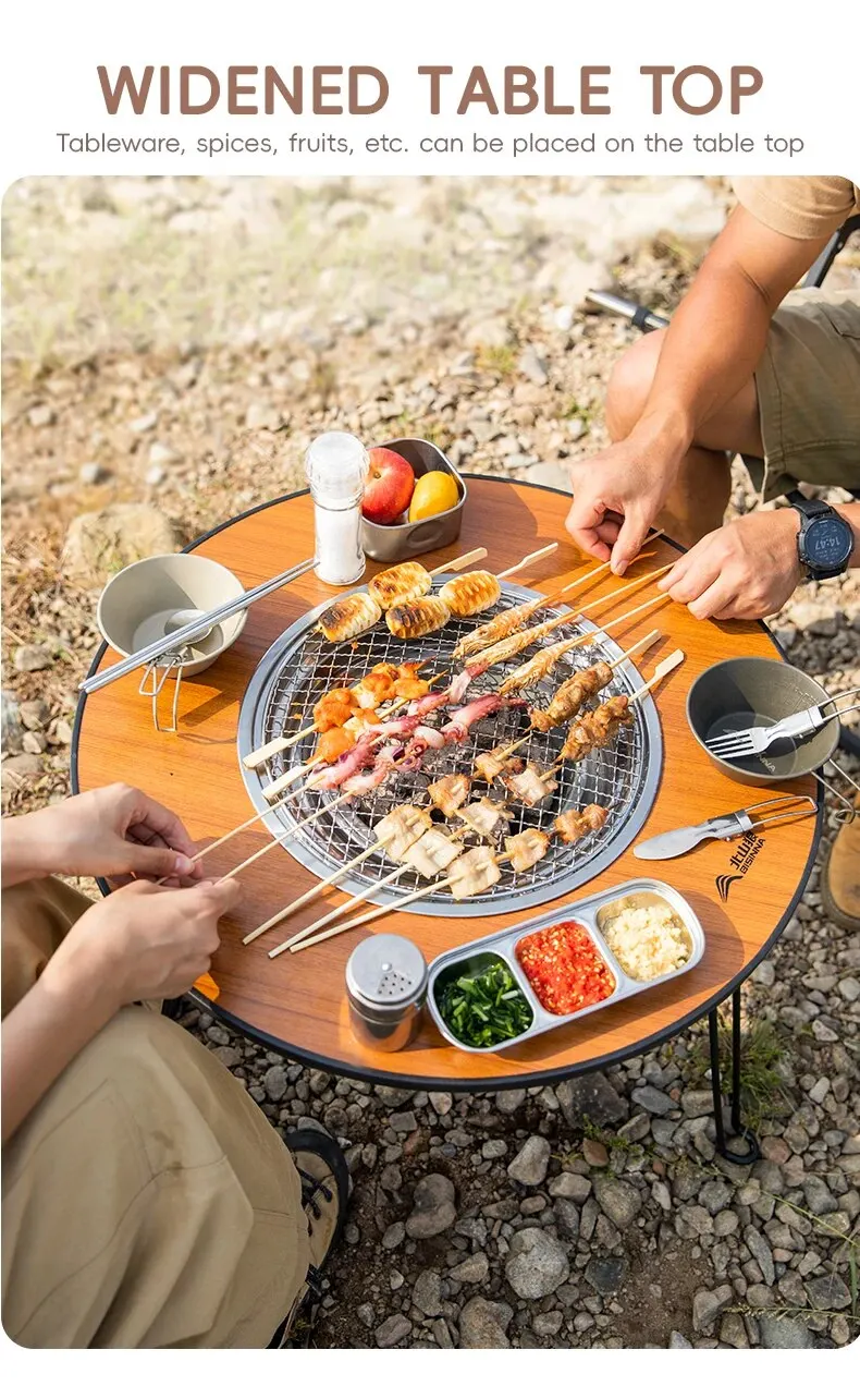 BISINNA 접이식 바베큐 라운드 테이블 스토브, 휴대용 캠핑 바베큐 숯 그릴, 보관 가방 포함, 파티오 차 끓이기