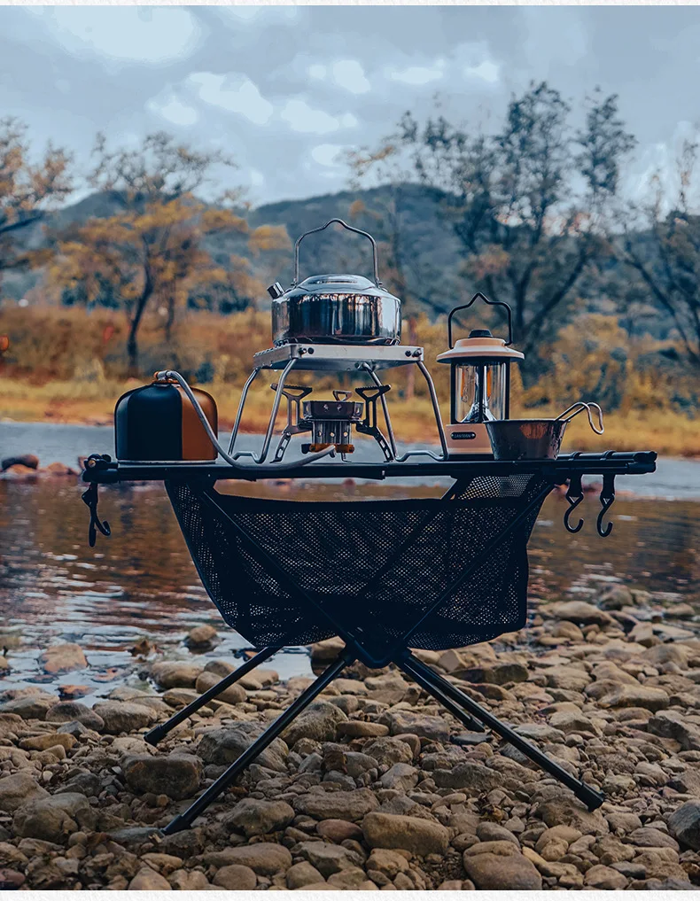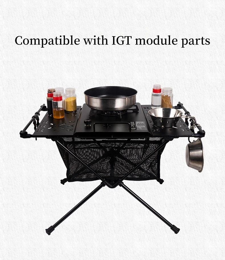 WESTTUNE IGT 스토브가 있는 캠핑 테이블, 휴대용 알루미늄 합금 접이식 테이블, 액세서리 포함, 다기능 야외 테이블