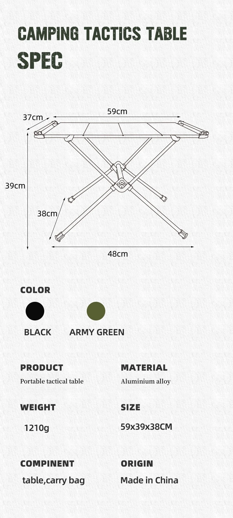 캠핑 IGT 테이블 세트, 알루미늄 합금 접이식 테이블, 휴대용 가방 포함, 경량 야외 책상 피크닉 전술 IGT 테이블, 2.5mm